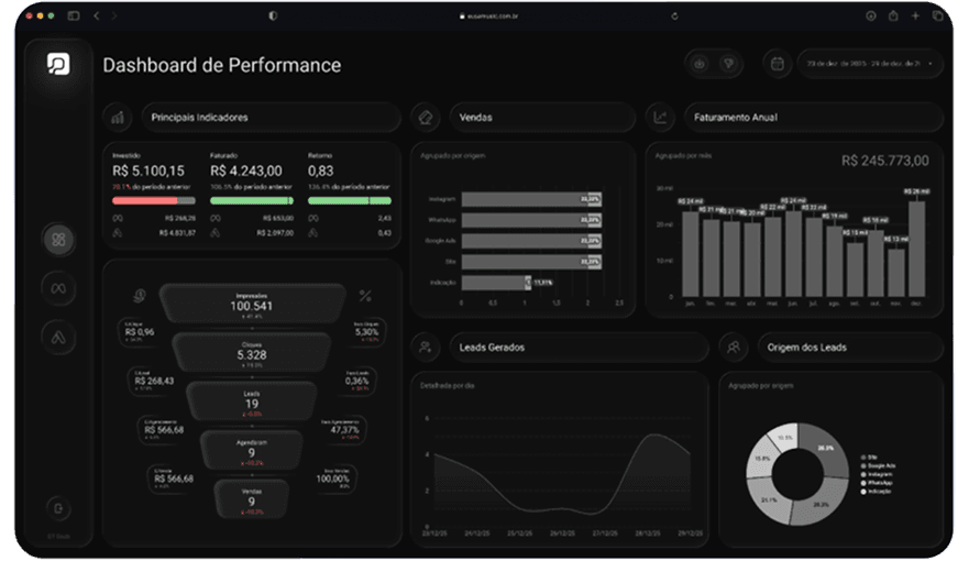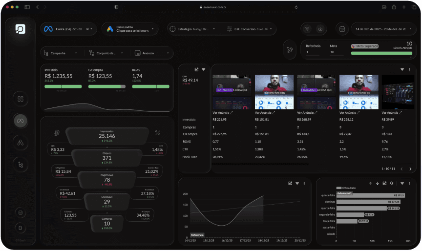 Transforme dados em decisões assertivas e fidelize seus clientes de tráfego pago com o GT Dash Pro.