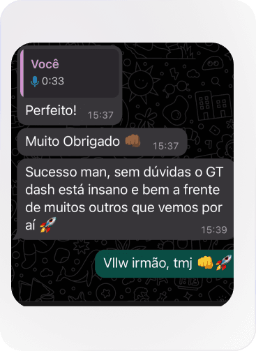 O GT Dash Pro reune diversas ferramentas e recursos para que você tenha uma visão completa e detalhada sobre os principais aspectos que ajudam você a ter mais segurança e assertividade na tomada de decisão.